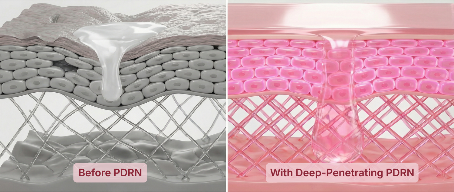 | Primary Mechanism | DNA Repair (PDRN) | Hydration Only | Needle Injection |
